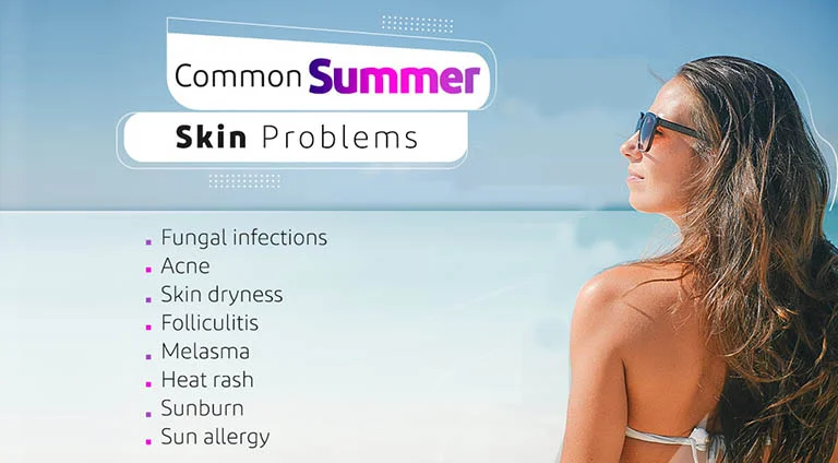 - One of the most prevalent skin problems in summer is sunburn. Prolonged exposure to harmful UV rays can damage the skin, leading to redness, pain, and peeling. To prevent sunburn, always wear sunscreen with a high SPF, seek shade during peak sun hours, and wear protective clothing, such as wide-brimmed hats and sunglasses.